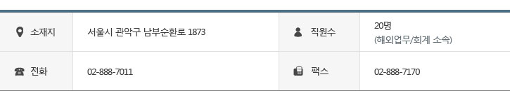 ¼¿ïÁö»ç : ¼¿ï½Ã °ü¾Ç±¸ ³²ºÎ¼øÈ¯·Î 1873TEL : 02-888-7011FAX : 02-888-7170